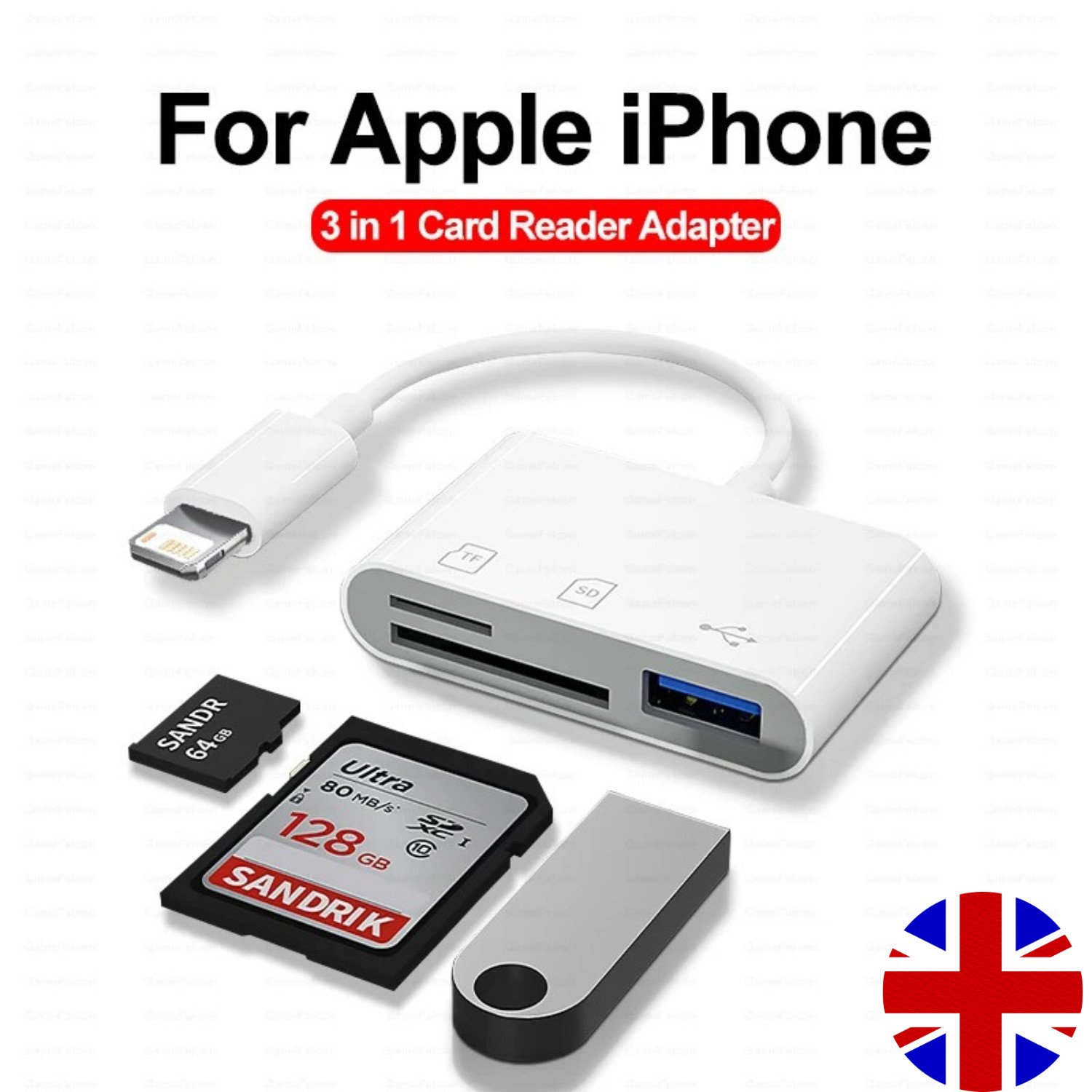 8 pin to SD Memory Card Reader USB OTG Adapter For iPhone 11 12 13 14 X ipad UK