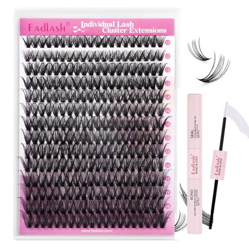 FADLASH DIY Lash Extension Kit Individual Lashes 40P 0.07D Curl 12-18mmClusters Lash Bond and Sea for Eyelash Extensions