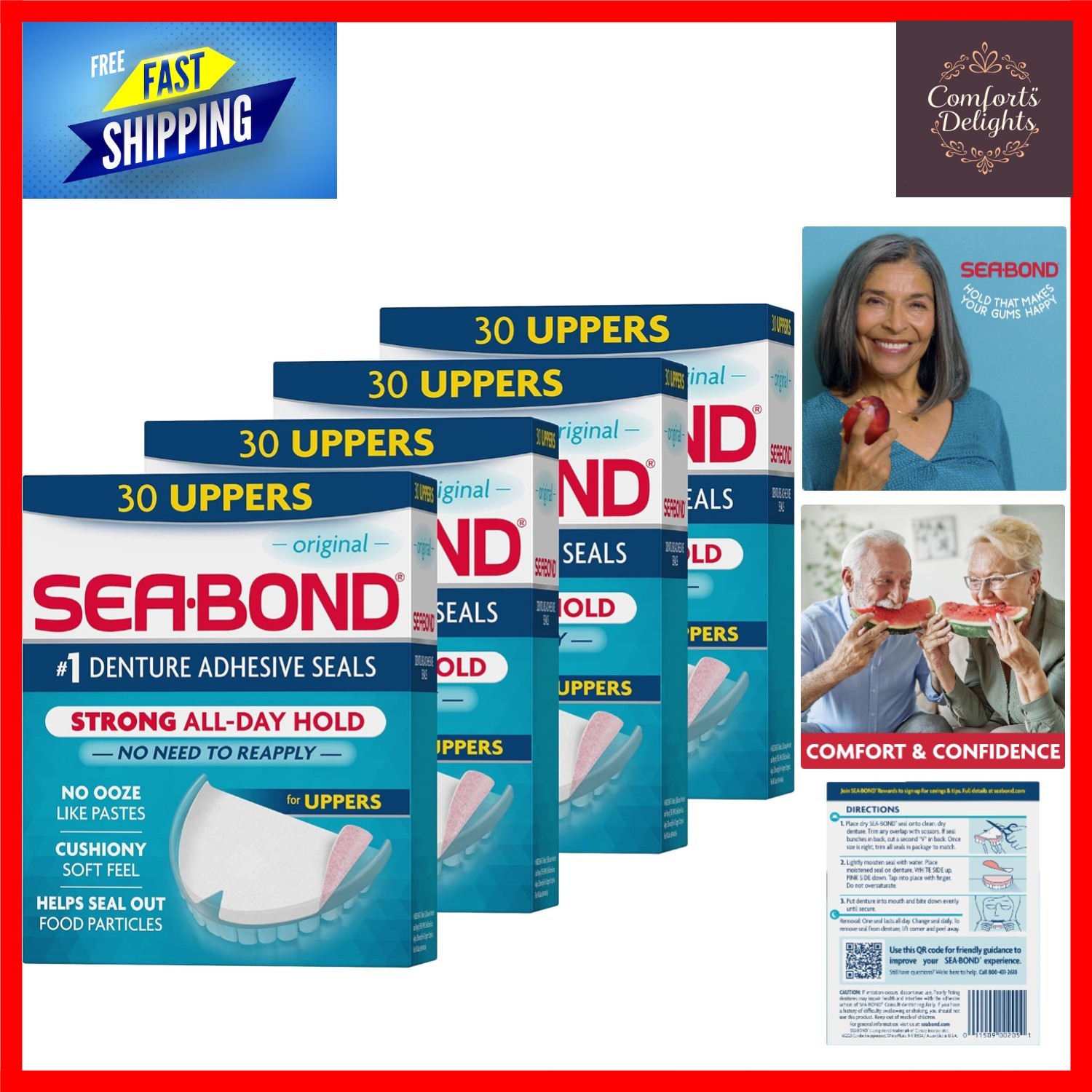 Sea-Bond Secure Denture Adhesive Seals, Original Uppers, Zinc-Free, All-Day-Hold, Mess-Free, 30 Count (Pack of 4)