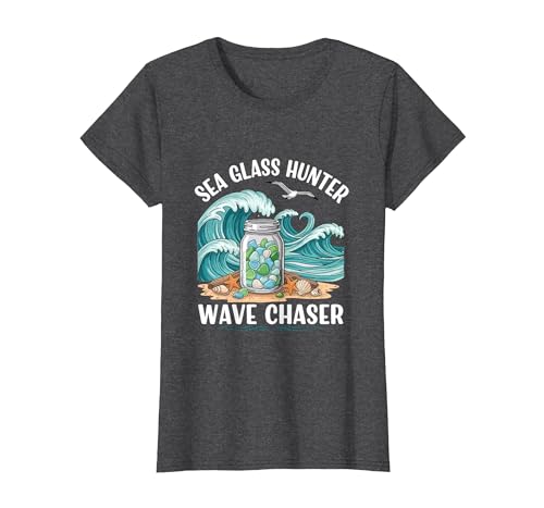 Sea Glass Hunter Wave Chaser Beach Collector Spirit T-Shirt, Women, Dark Heather Grey, X-Large