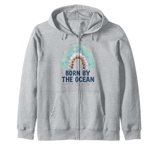 Born By The Ocean Sea Glass Boho Rainbow Coastal Beach Zip Hoodie
