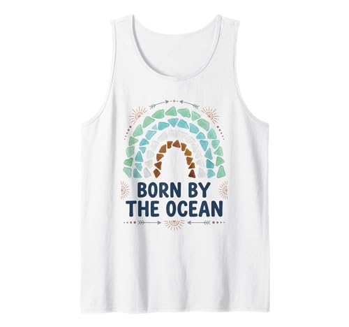 Born by The Ocean Sea Glass Boho Rainbow Coastal Beach Tank Top