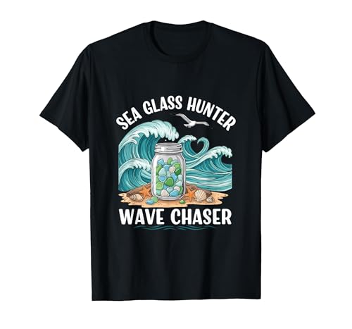 Sea Glass Hunter Wave Chaser Beach Collector Spirit T-Shirt, Men, Black, Medium