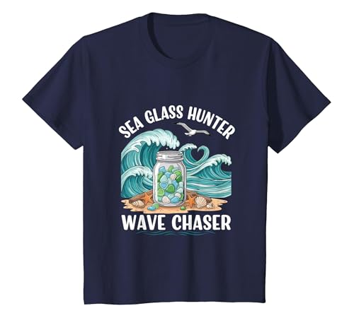 Sea Glass Hunter Wave Chaser Beach Collector Spirit T-Shirt, Youth, Navy Blue, X-Small