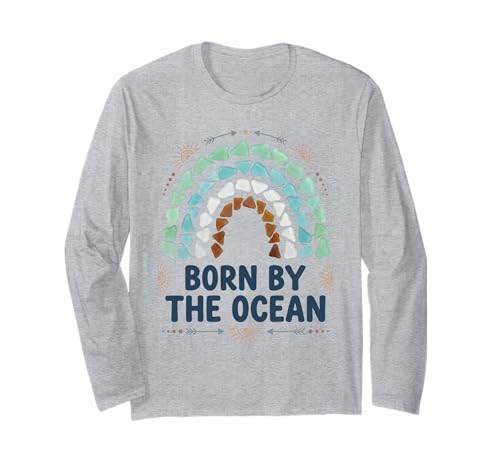 Born by The Ocean Sea Glass Boho Rainbow Coastal Beach Long Sleeve T-Shirt