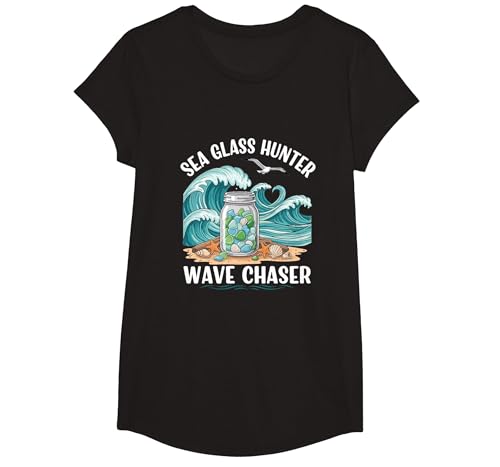 Sea Glass Hunter Wave Chaser Beach Collector Spirit T-Shirt, Girls, Black, Large