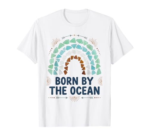 Born by The Ocean Sea Glass Boho Rainbow Coastal Beach T-Shirt