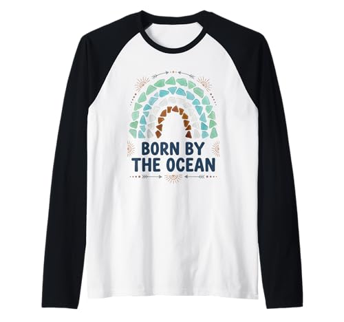 Born by The Ocean Sea Glass Boho Rainbow Coastal Beach Raglan Baseball Tee
