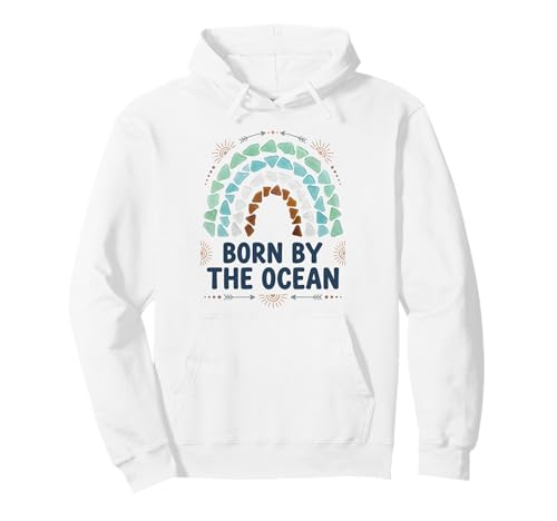 Born By The Ocean Sea Glass Boho Rainbow Coastal Beach Pullover Hoodie
