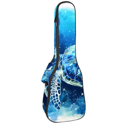 Watercolor Blue Ocean Sea Turtle Concert Ukulele Case with Storage, Waterproof Gig Bag 1 cm Thick Sponge Padding