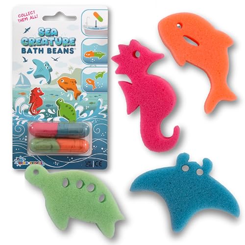 The Bean People Kids Bath Bombs with Surprise Toy Inside, Sea Creatures Bath Sponge, Magic Grow Capsules, Fun and Educational Bath Gifts for Ages 3 and Up, Stocking Filler, Collectible Water Toys
