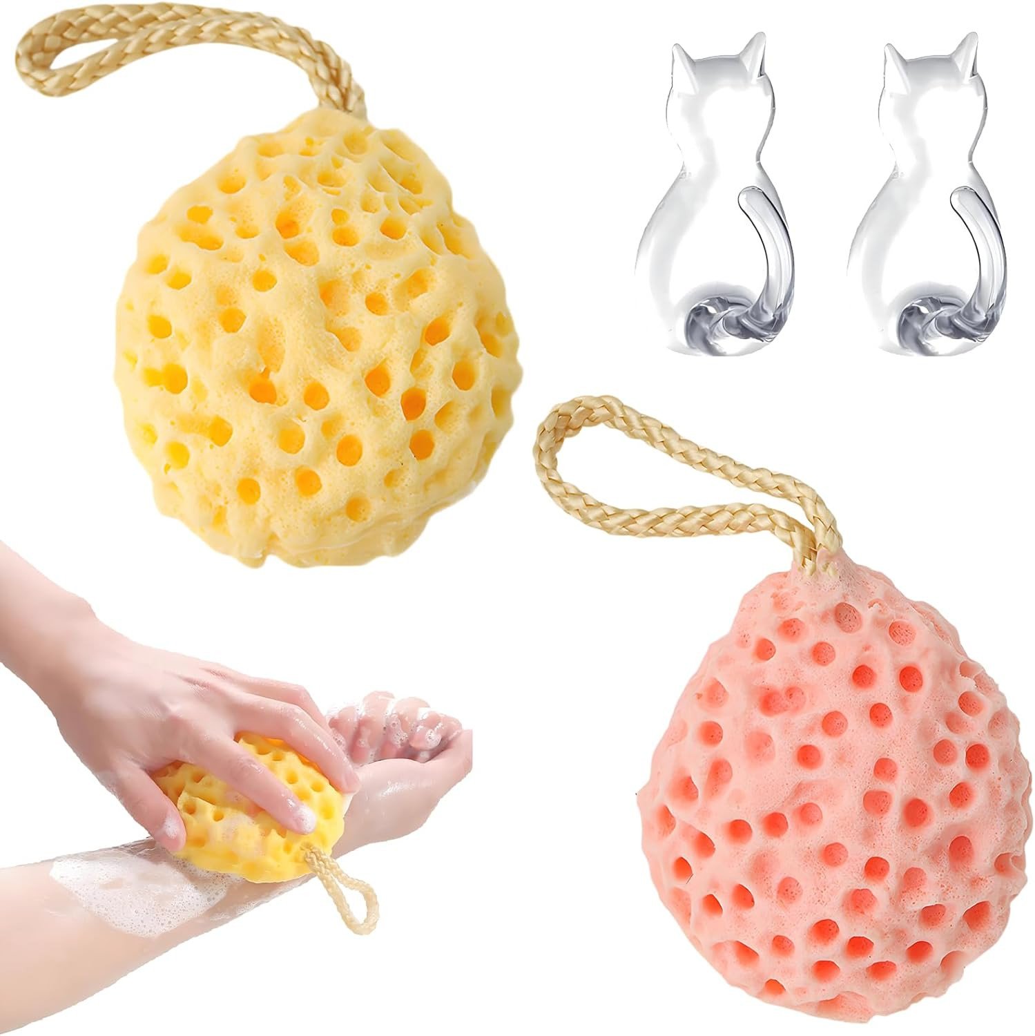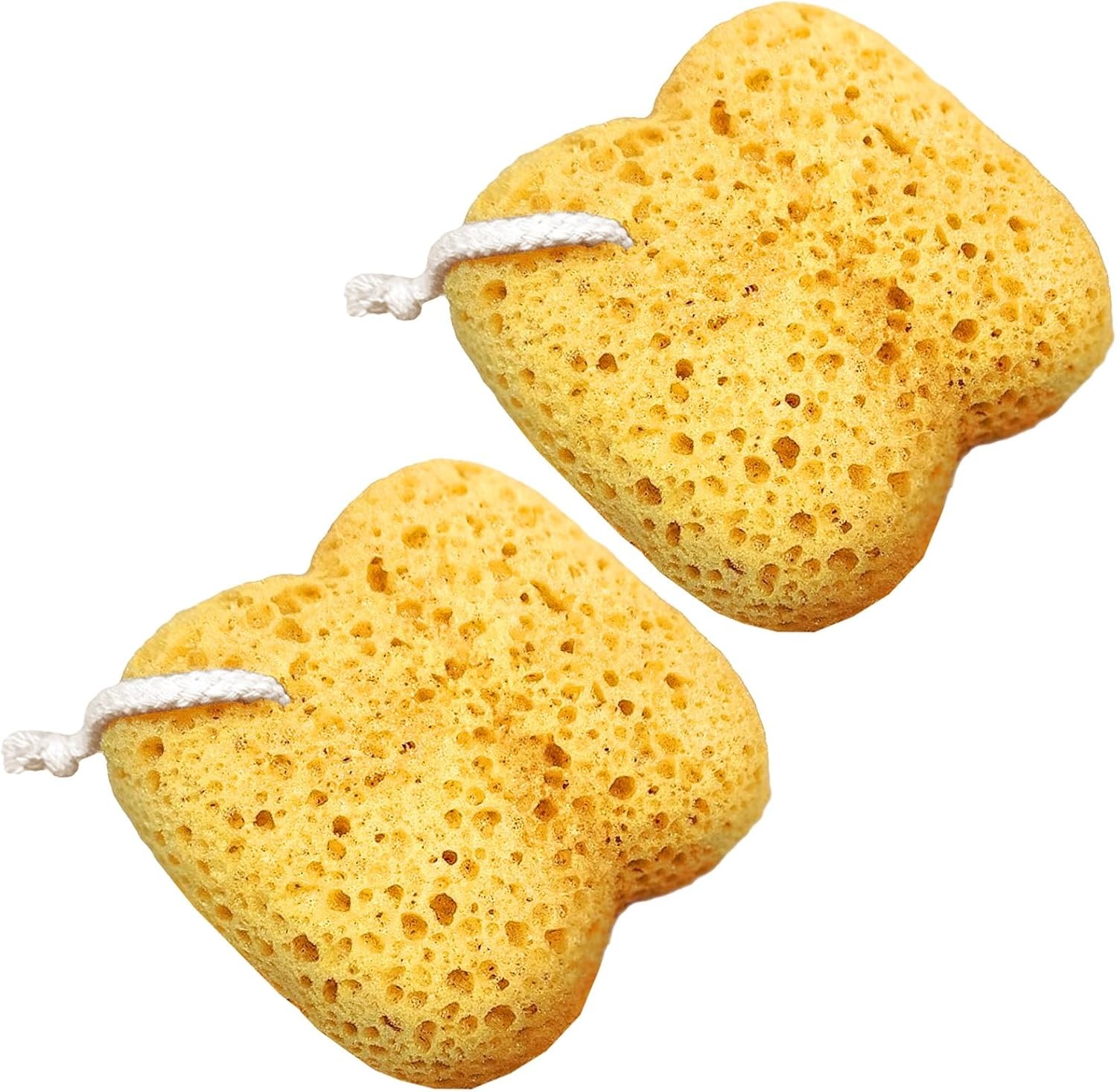 2Pcs Bath Sponge, Natural Sea Sponge, Larger Shower Sponges for Women Men, Exfo