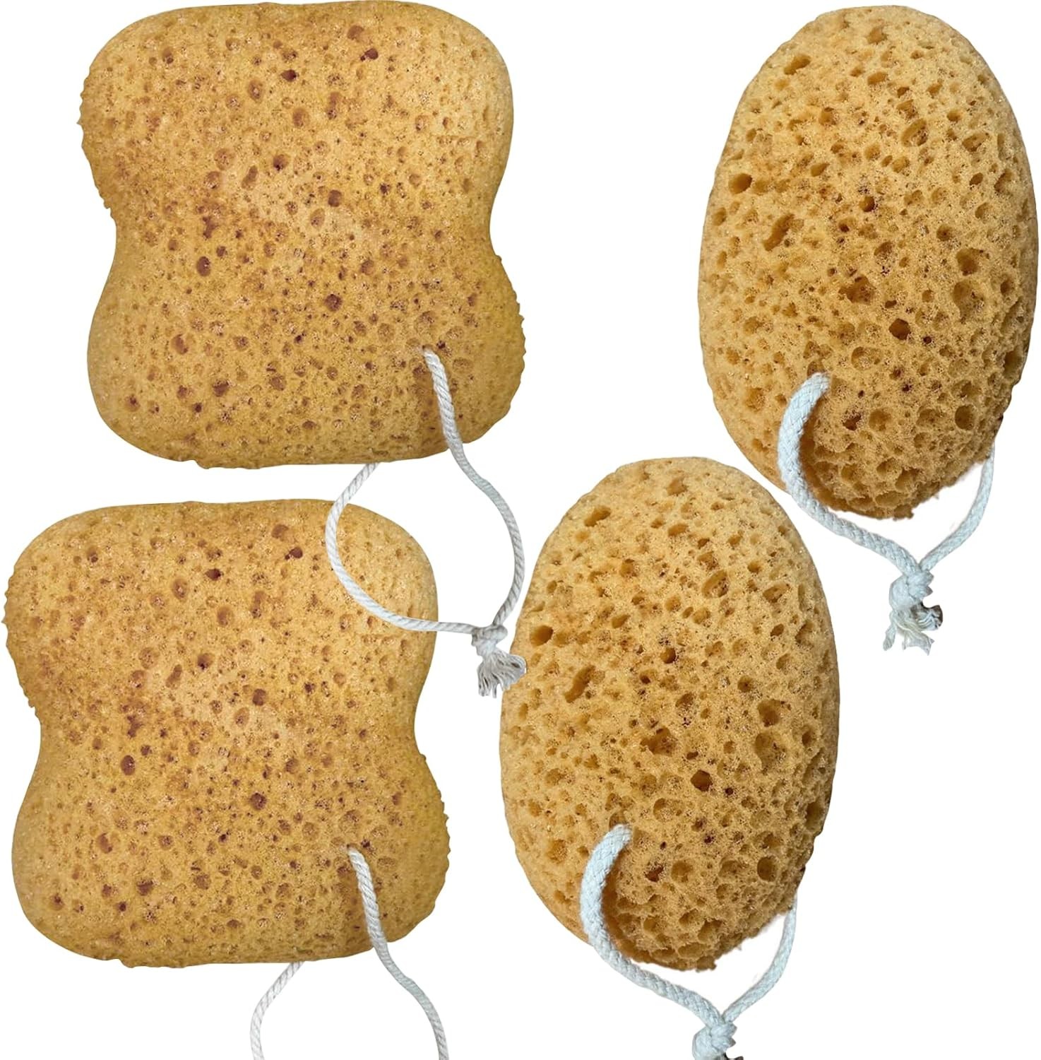 4-Pack Sea Sponge Set for Bath & Shower, 2 x Large & 2 x Extra-Large Exfoliatin