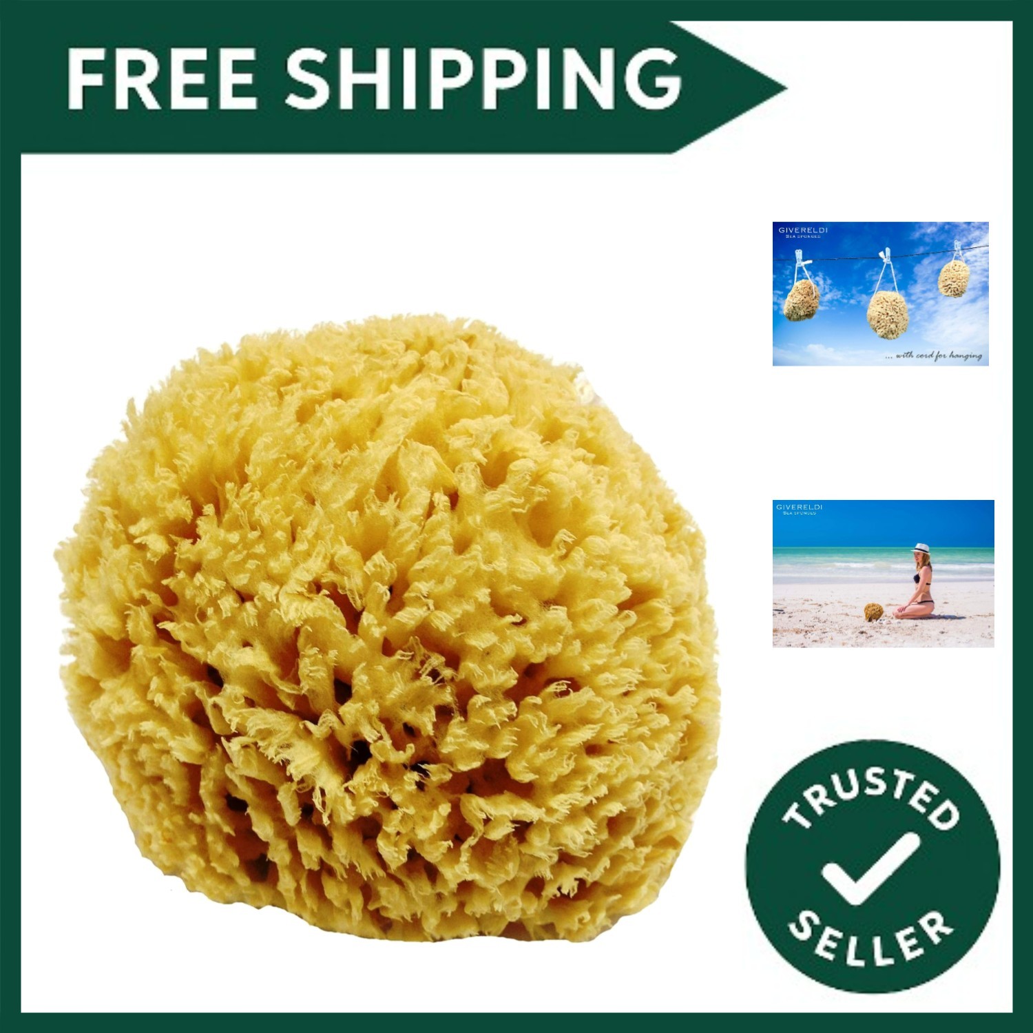 Givereldi Power Exfoliator Natural Sea Sponge - Strong, Durable, Unbleached, Po
