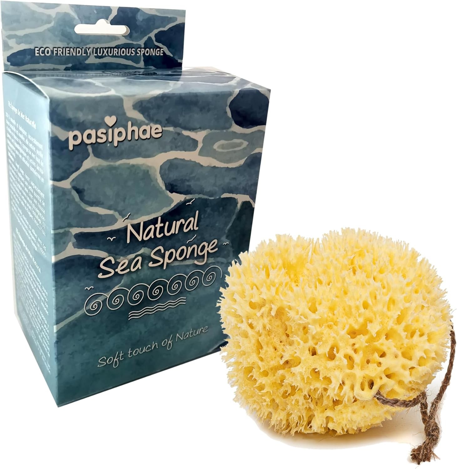 Pasiphae Natural Soft Loofah Sea Sponge,Yellow Honeycomb Body Sponge on a Rope