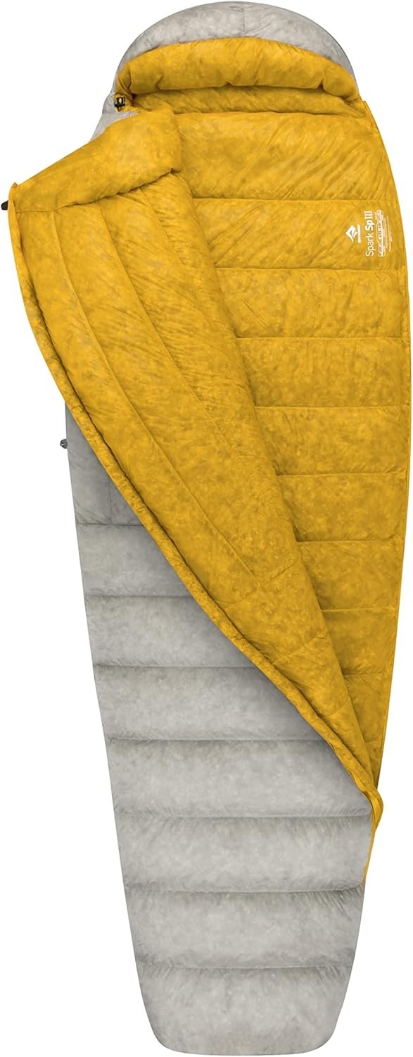 Sea to Summit - Spark Ultralight Down Sleeping Bag Regular (7°C) - Mummy Shaped - Full Length - 850+ Loft Ultra-Dry Down - 1 Season - For Backpacking - Grey & Yellow - 363g