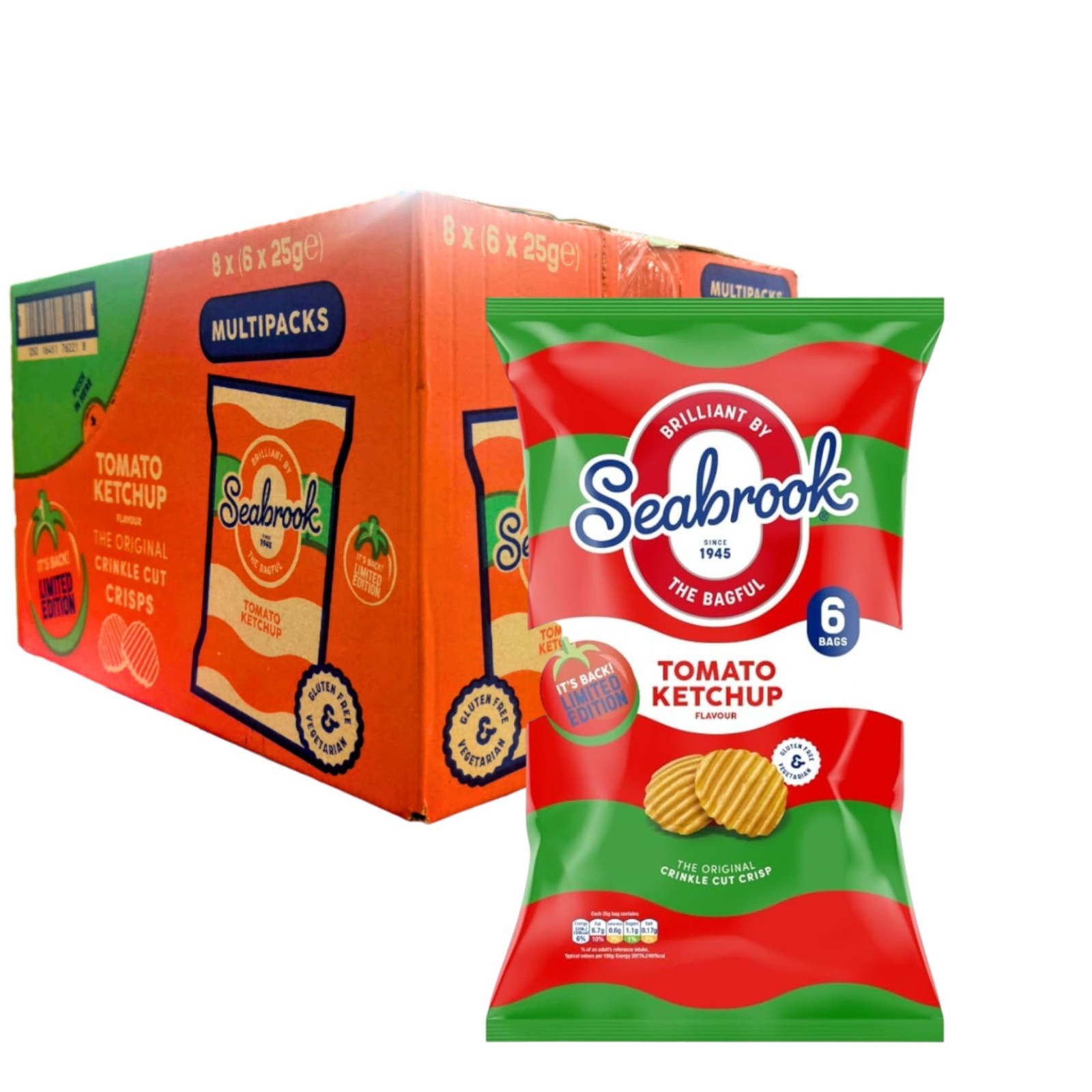 Seabrook Tomato Ketchup Crisps 48 Bags (8x6 Packs) 25g BULK BOX | GF & Veggie