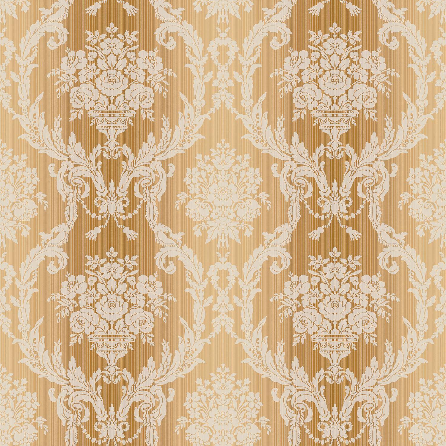 Seabrook Floral Damask Stria Ochre Wallpaper Acrylic Coated Paper Traditional