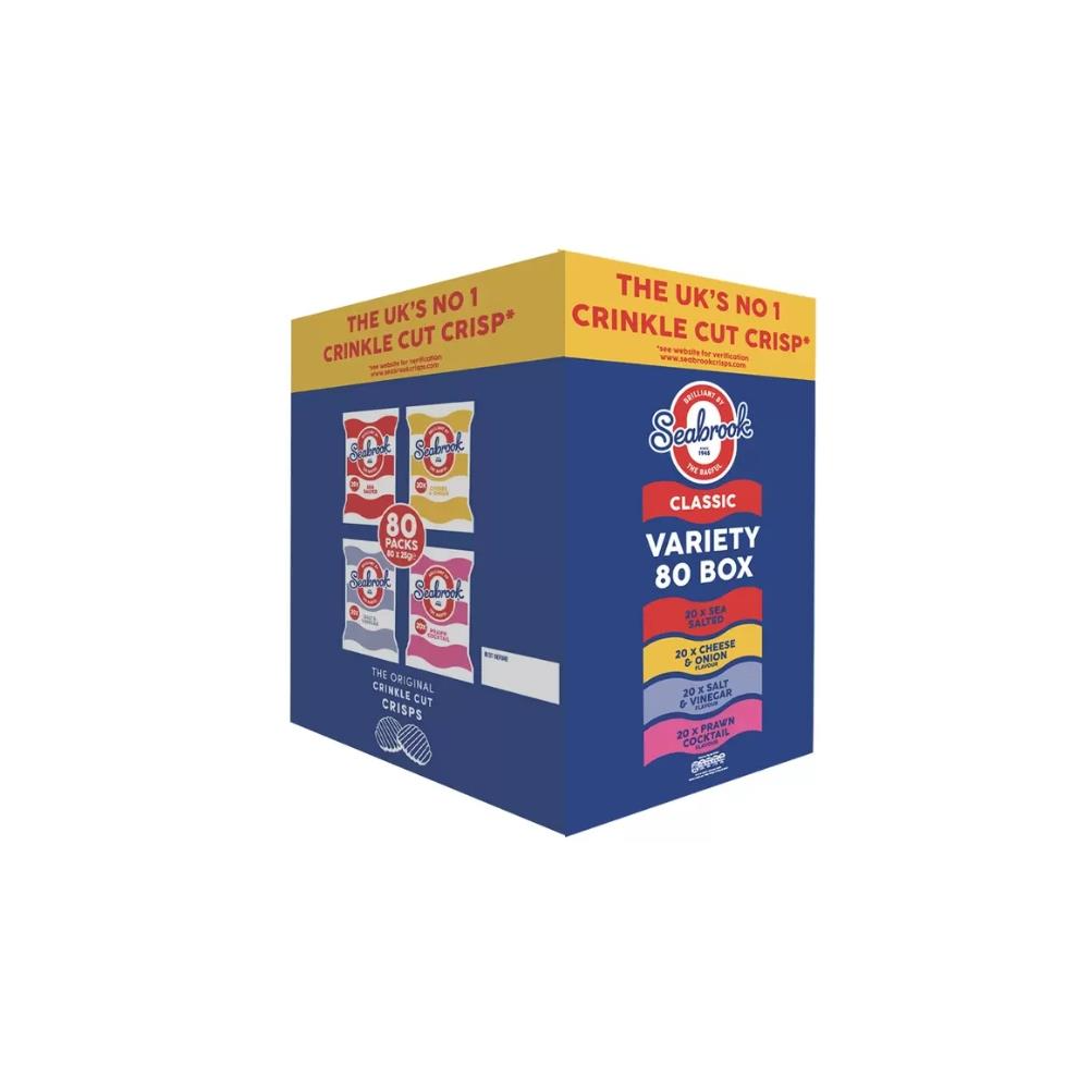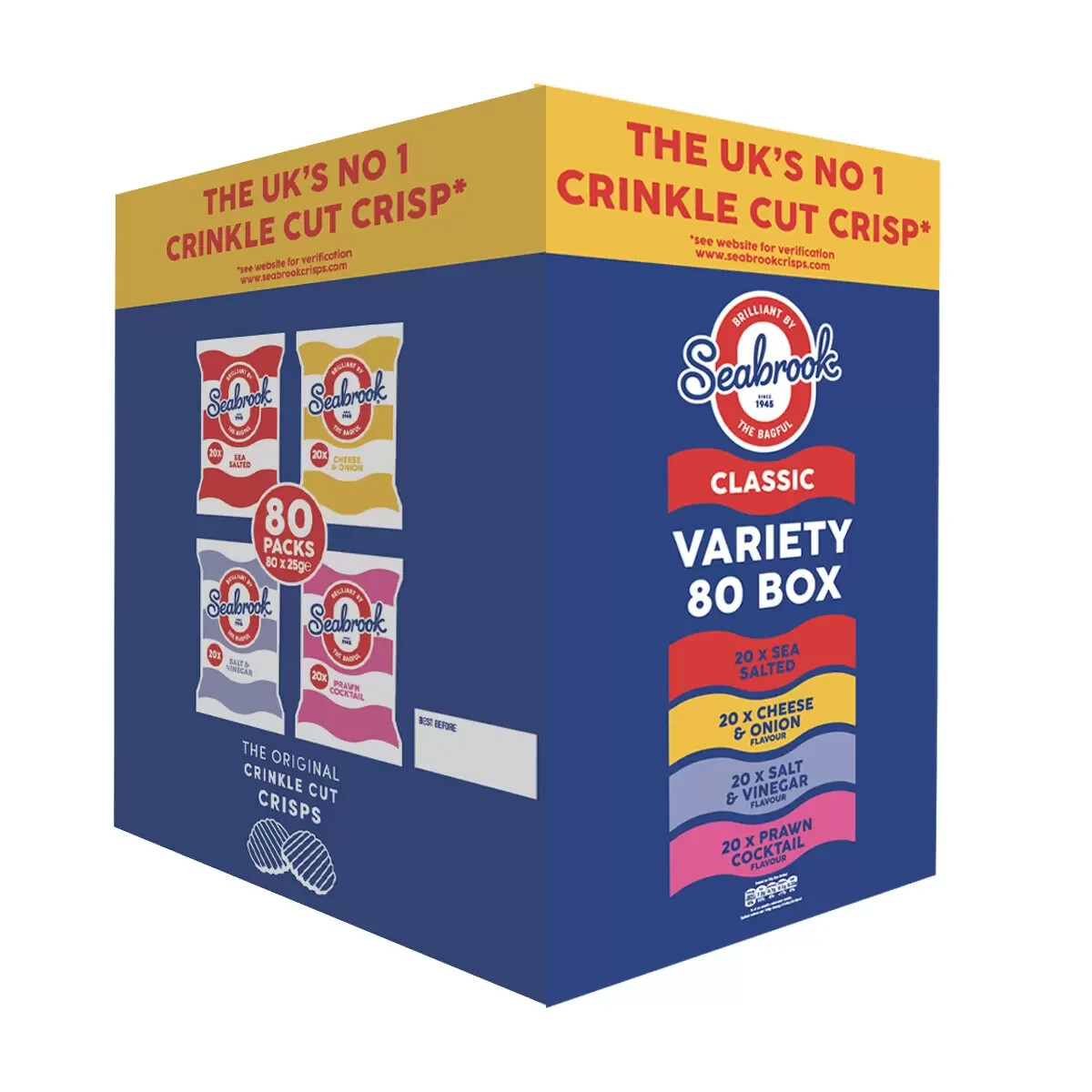 Seabrook Variety Box, 80 x 25g – Assorted Flavours of Classic British Crinkle Cut Crisps, Perfect for Lunchboxes, Sharing, Vending & On-the-Go Snacking, Gluten-Free & Vegetarian Friendly