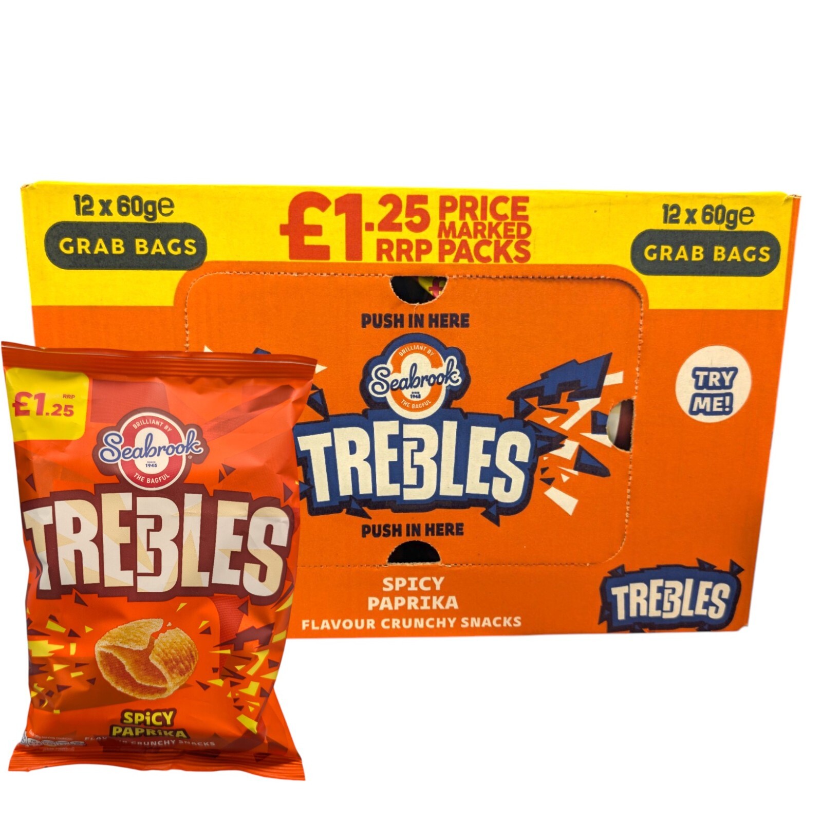 Seabrook TREBLES Spicy Paprika Crisps | PMP £1.25 | 12 x 60g | Full Box