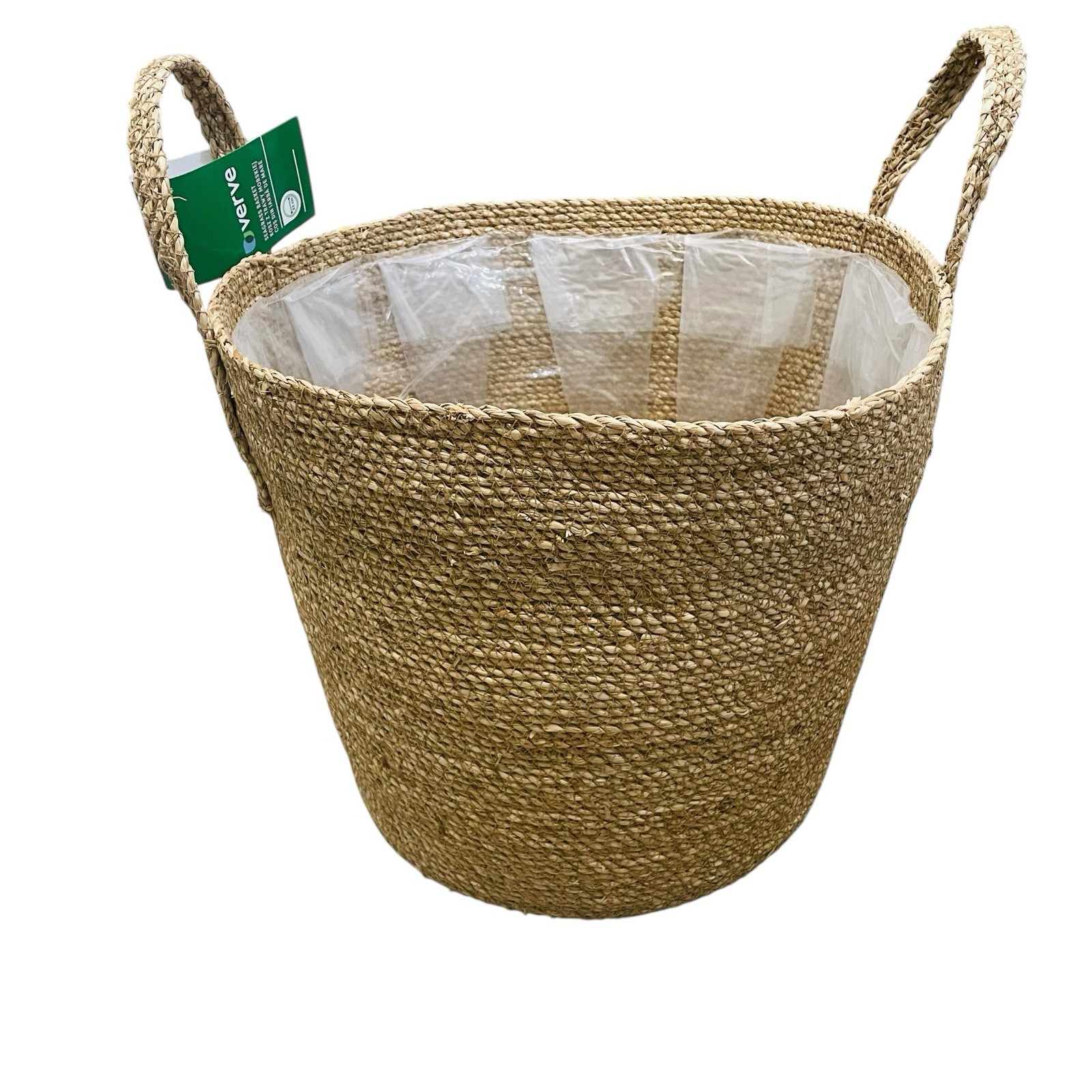 Reinscer Plant Basket with Liner, Woven Seagrass Belly Baskets, Decorate,Storage Laundry Picnic Grocery Straw Bag