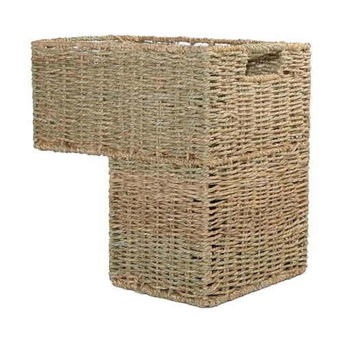 Wickerfield Seagrass Stair Basket, L-Shape Wicker Basket, Step Storage Baskets, Bin for Laundry, Household Items, Toys, Nursery Room (Seagrass)