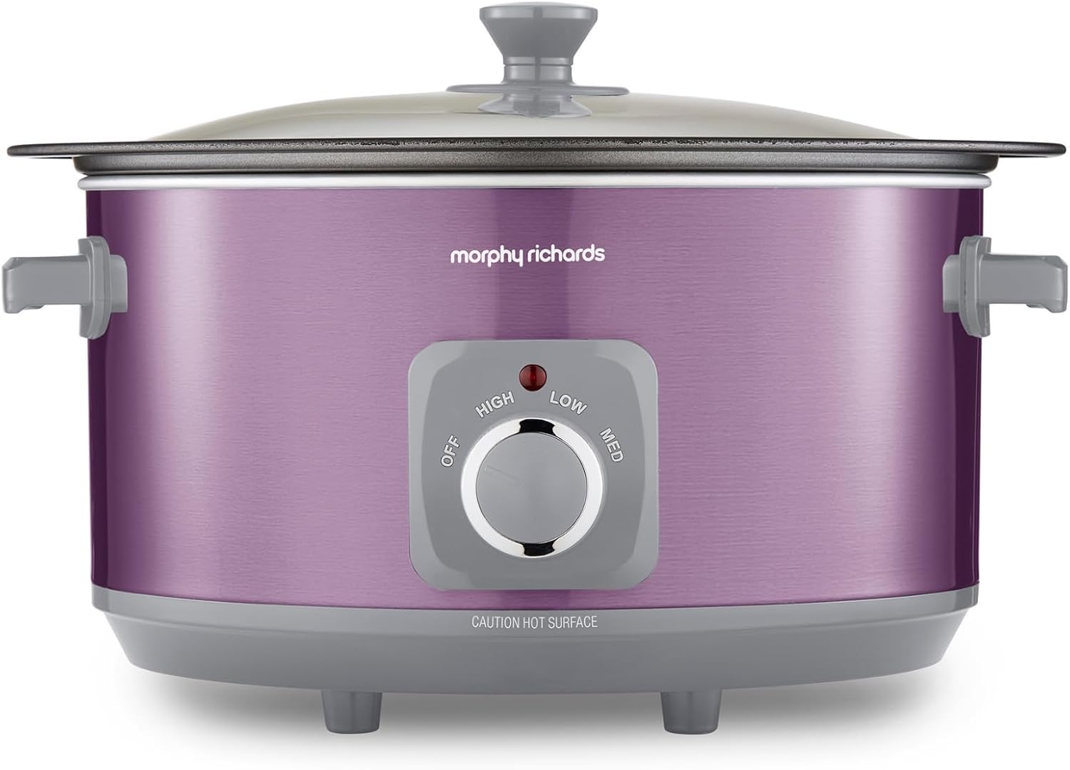 Morphy Richards Accents 3.5L Sear & Stew Slow Cooker, Shatter Resistant Non Stick Aluminium Pot, Single Pot Cooking, Compact, 3 Heat Settings, Hob Proof, Glass Lid, Easy Clean, 163W, Purple, 460024