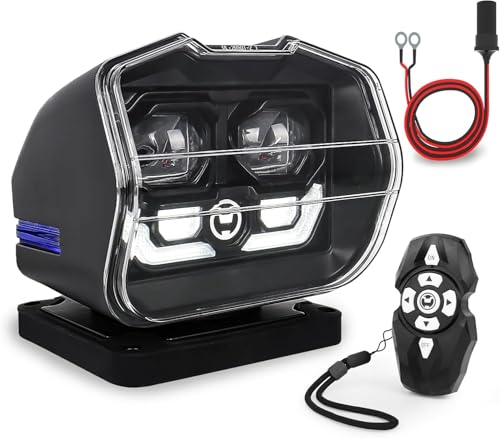 MOVOTOR LED Search Light Wireless Remote Control 360° Rotating Boat Search light with Strong Magnetic Base&Permanent Mount Automatic Auto Search LED Spot Light for Truck Boat Marine Camping Fishing