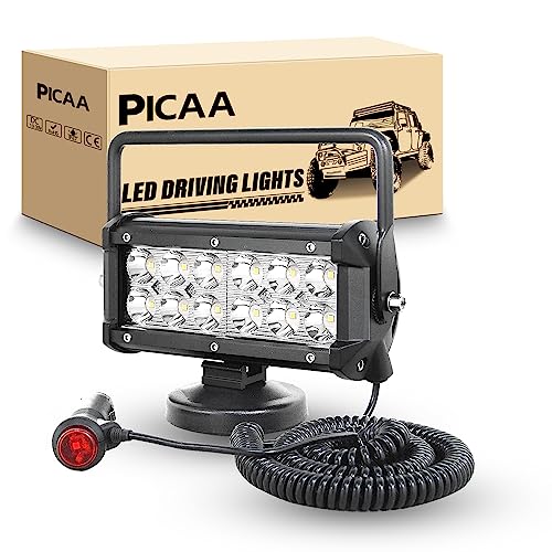 PICAA 1PCS 7 inch 36W Magnet Round Led Work Light Spot Beam Portable Magnetic Base Portable 12V 24V 6000K LED Driving Light Search Lights for Car Off road Truck 4x4 SUV ATV Tractors