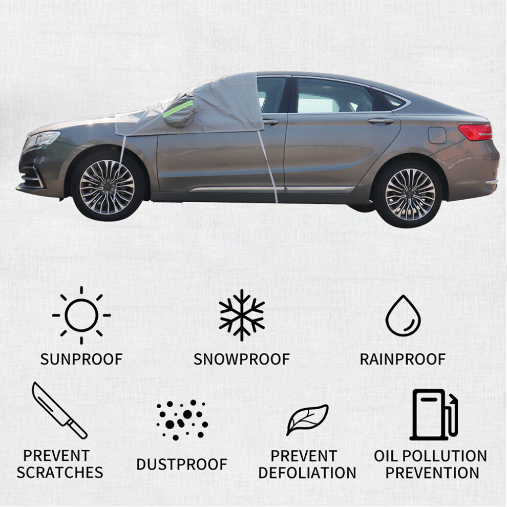Car Cover w/ UV Protection & Thermal Shield, Windproof Dustproof Half Body Cover Universal Fit Waterproof Frost Resistant Snow Cover 4 All Season Use