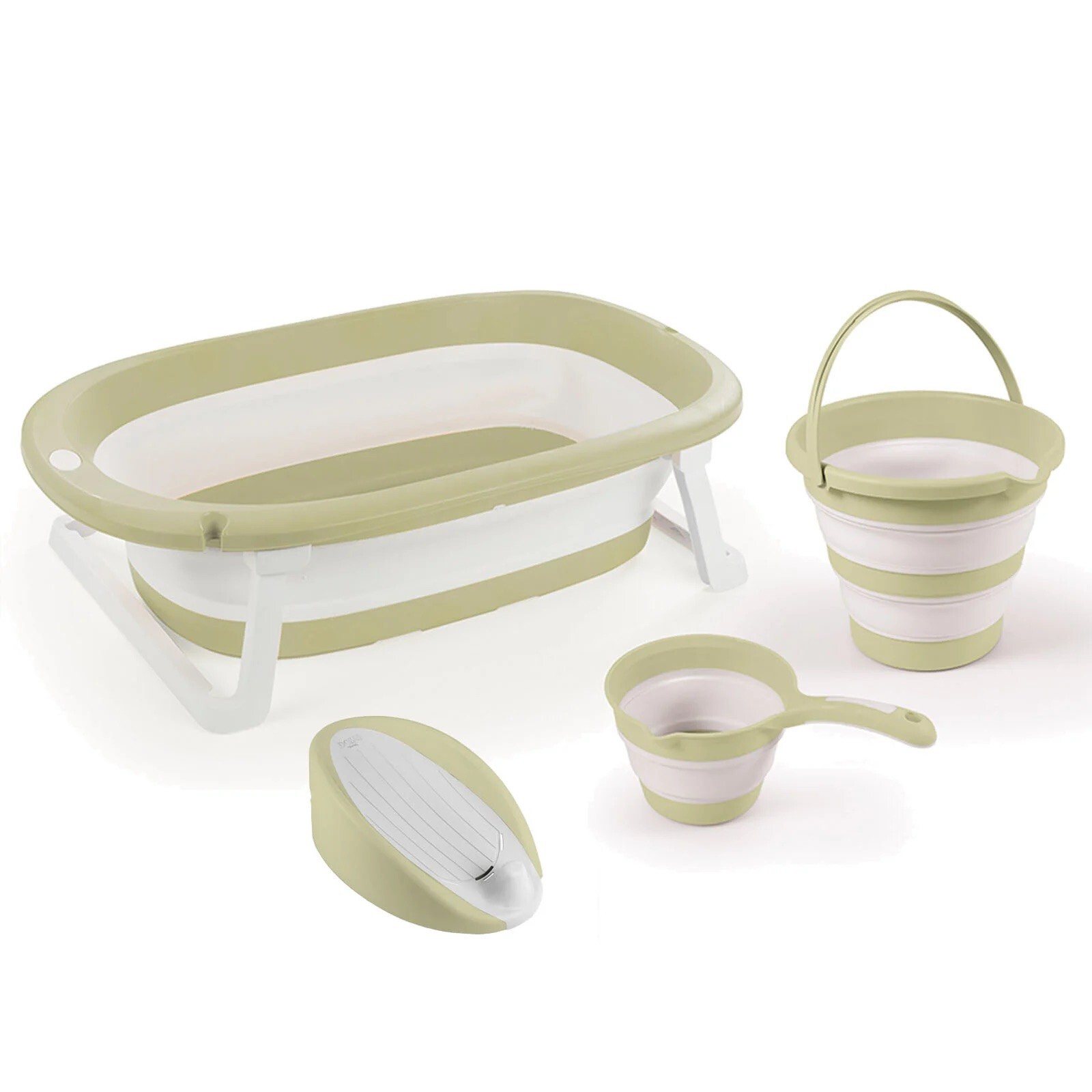 Baby Bath Set Bath Tub Seat Bucket Pourer Foldable 4 Piece BUNDLE GREEN NEW UK