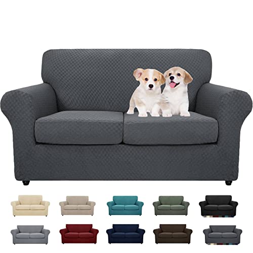 MAXIJIN 3 Piece Newest Jacquard Couch Covers for 2 Cushion Couch Stretch Non Slip Love Seat Couch Cover for Dogs Pet Friendly Elastic Furniture Protector Loveseat Slipcovers (Loveseat, Dark Gray)
