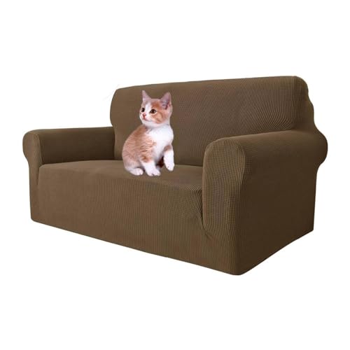MAXIJIN Super Stretch Couch Cover for 2 Seater Couch, 1-Piece Universal Love Seat Covers Jacquard Spandex Sofa Protector Dogs Pet Friendly Fitted Loveseat Slipcover (2 Seater, Coffee)