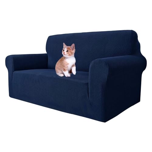 MAXIJIN Super Stretch Couch Cover for 2 Seater Couch, 1-Piece Universal Love Seat Covers Jacquard Spandex Sofa Protector Dogs Pet Friendly Fitted Loveseat Slipcover (2 Seater, Navy Blue)