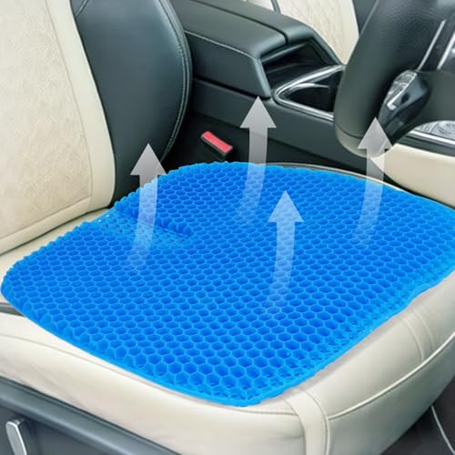 Mycketop Gel Car Seat Cushion, Cooling, Thick, Large, Breathable for Long Sitting Comfort, Pressure Relief for Back, Hip, Sciatica, Ergonomic Seat Pad for Car, Office, Wheelchair, Gaming (Light Blue)