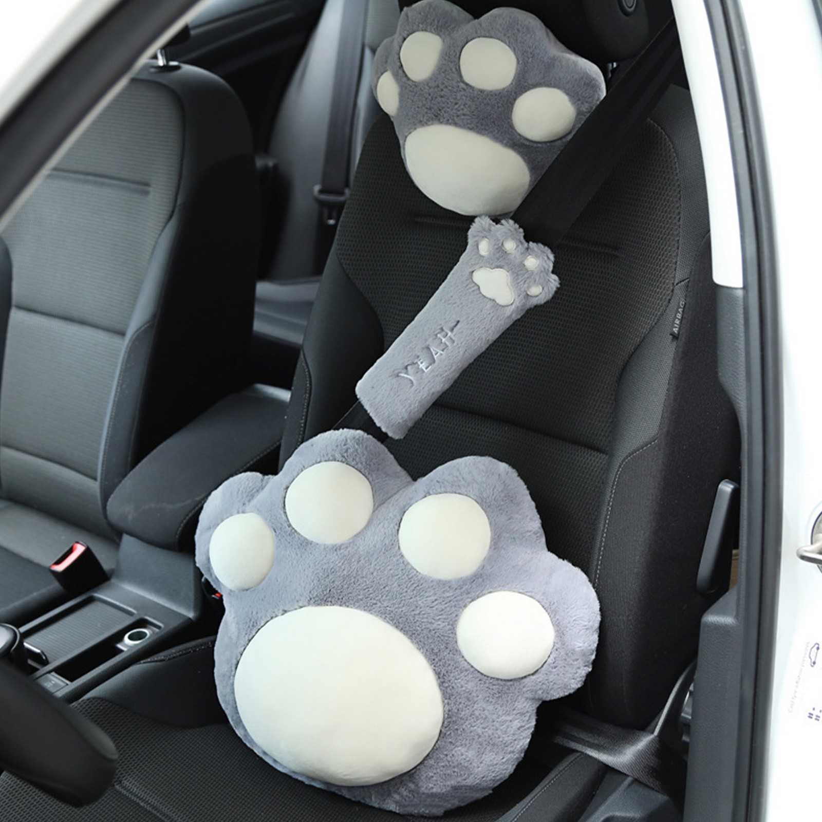 Grey Cute Seatbelt Covers Cat Claws Appearance Comfortable Soft Plush Car S OU