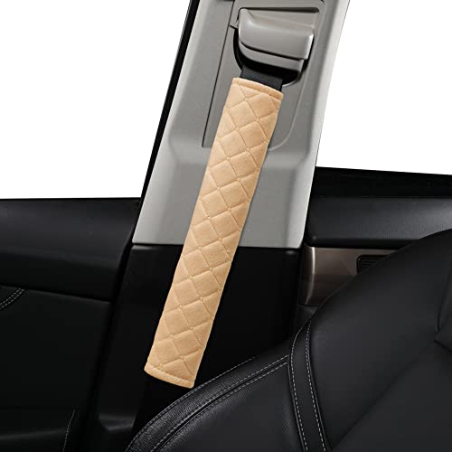 Extra Long Seatbelt Covers for Adults Kids Women & Men, Super Soft Car Seat Belt Strap Cushion for Sedan SUV Trucks, Shoulder Neck Chest Protector Pad, Auto Interior Accessories, 2pcs, Beige, 33cm