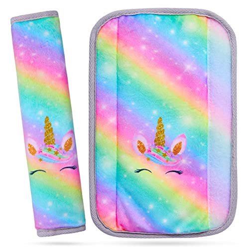 MHJY Seat Belt Pads for Kids Seatbelt Strap Cover 2 Packs Unicorn Car Seat Belt Covers Soft Comfortable Harness Pad for Toddlers Girls Boys Children, Rainbow