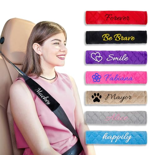 Personalized Seat Belt Pads, Embroidered Seatbelt Covers, Car Seat Belt Pads for Adults Seat Belt Cushion for Kids Universal Fit for All Cars and Backpack Neck Cushion Protector 25.5cm/10 Inch 1 Pack