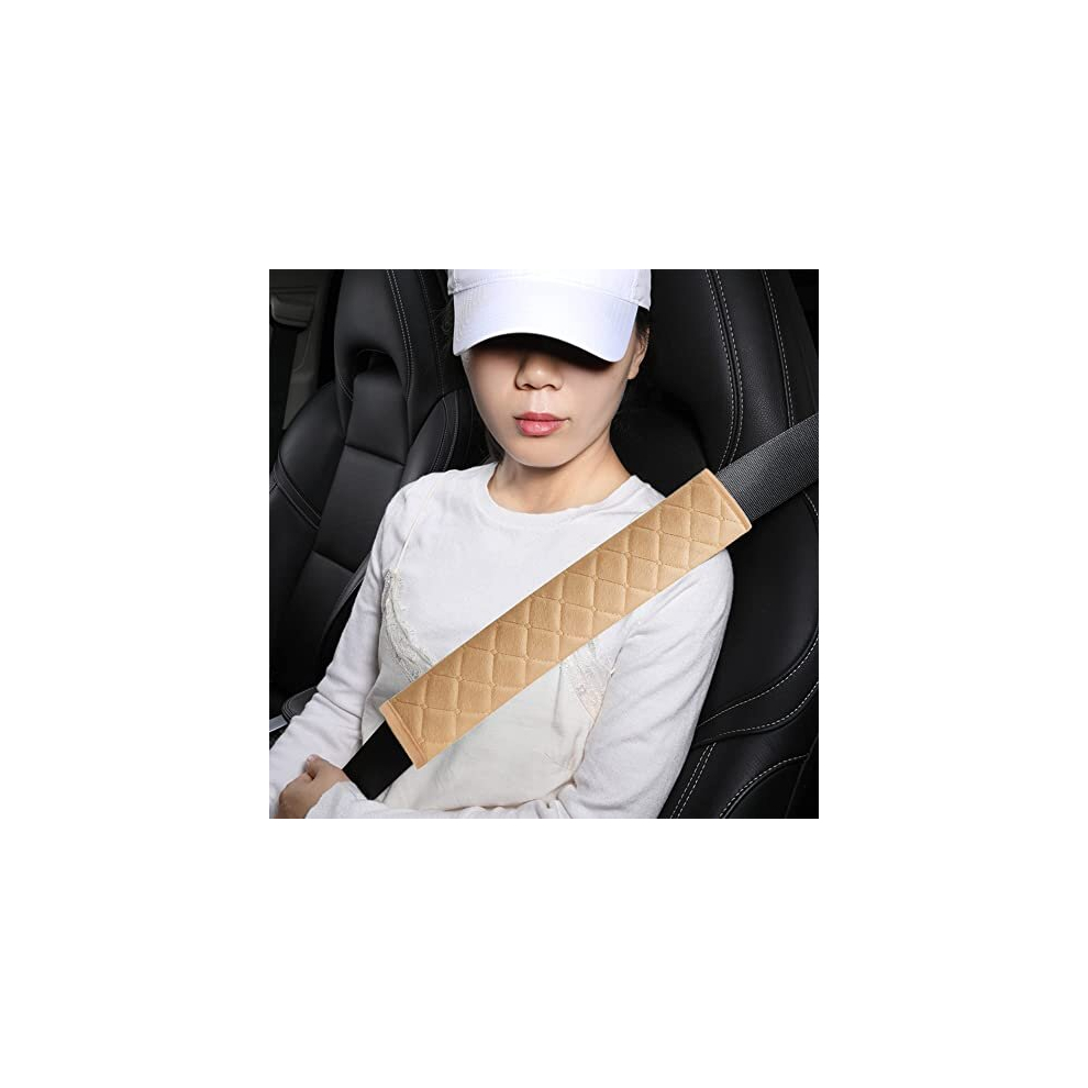 Extra Long Seatbelt Covers for Adults Kids Women & Men, Super Soft Car Seat Belt Strap Cushion for Sedan SUV Trucks, Shoulder Neck Chest Protector Pad, Auto Interior Accessories, 2pcs, Beige, 27cm