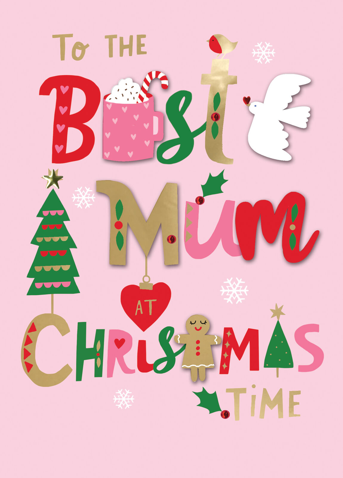 Best Mum At Christmas Time Fun Hand-Finished Christmas Card Family Xmas Cards