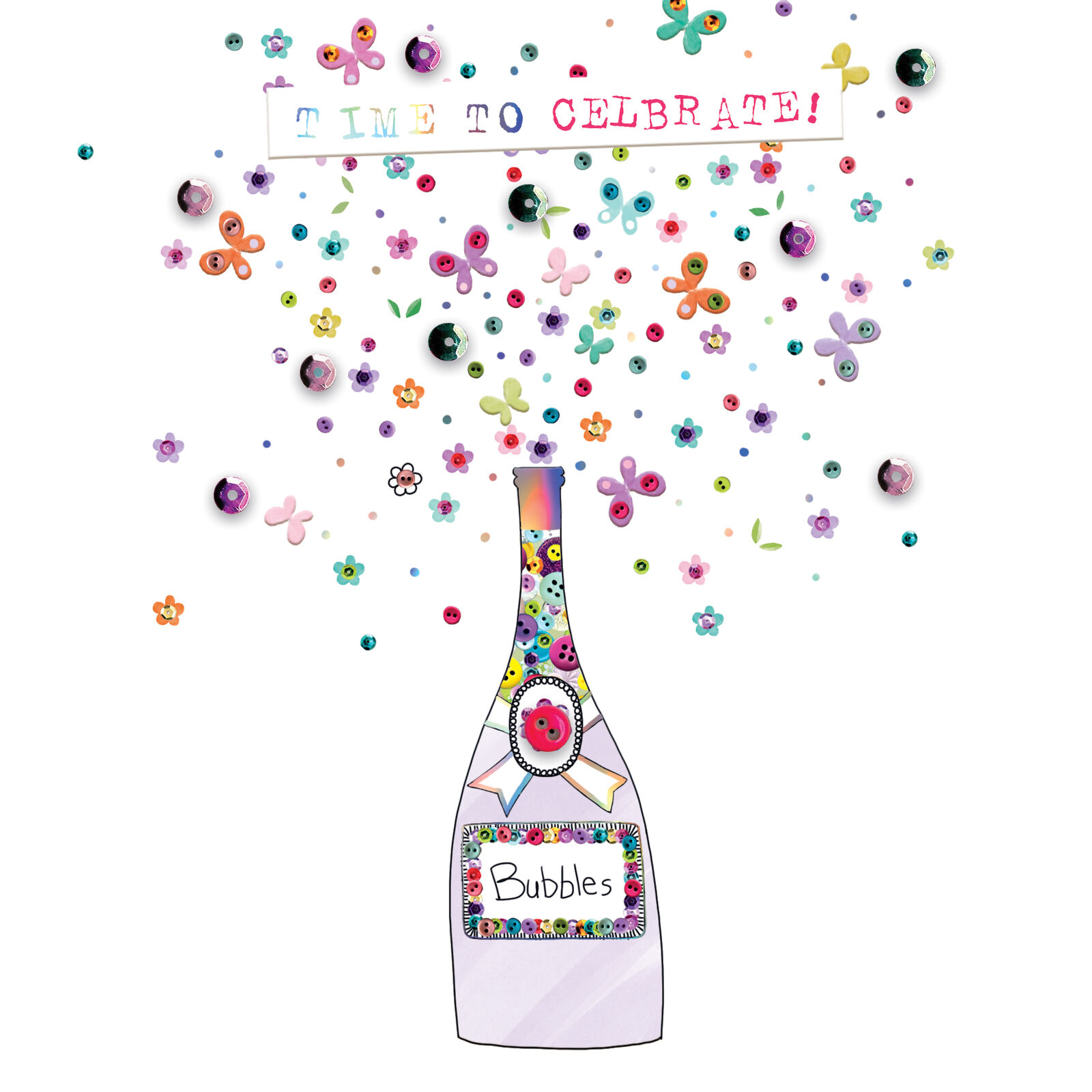 Time To Celebrate Hand-Finished Buttons Birthday Card Embellished Cards For Her