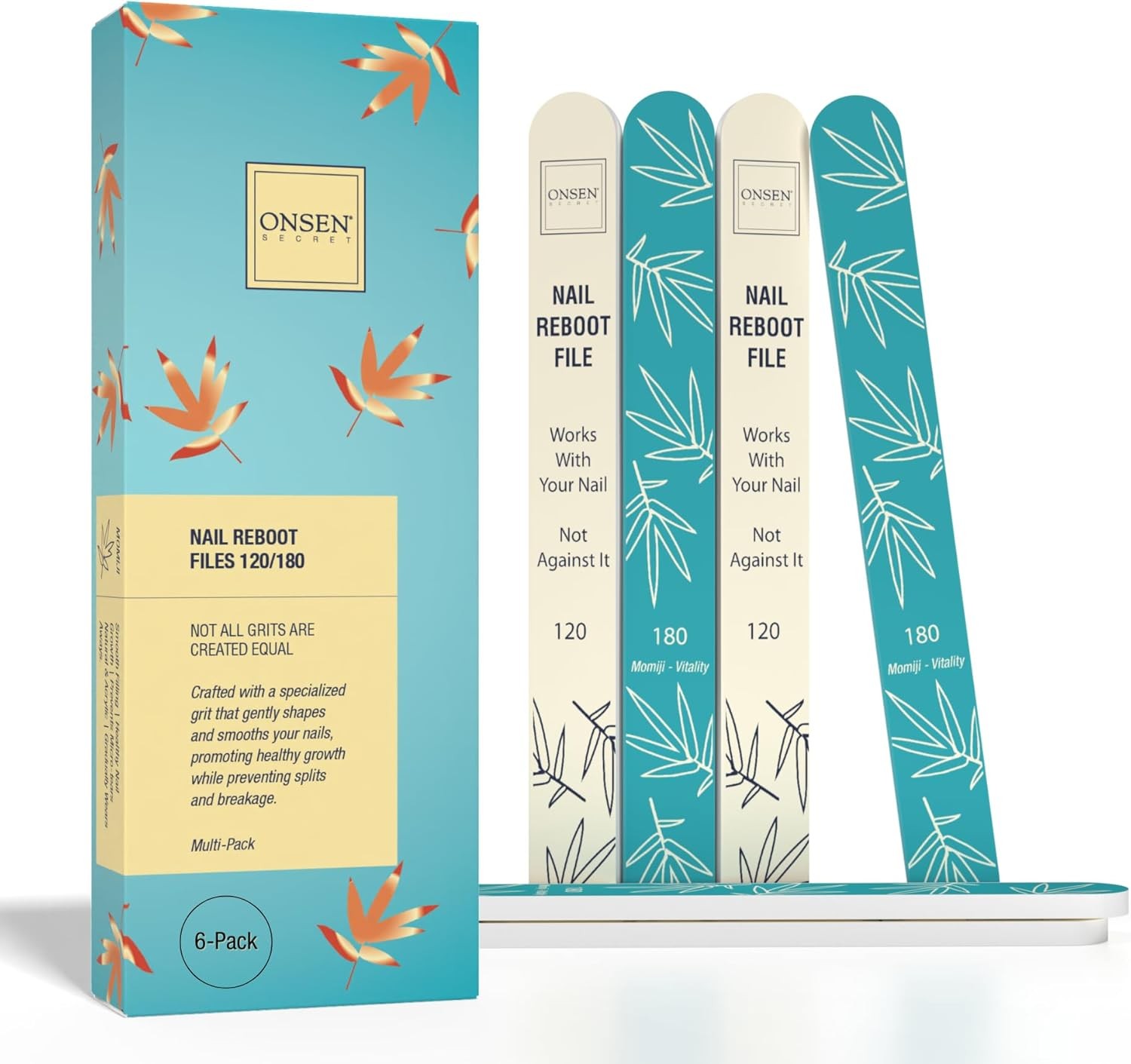 Onsen Secret Japanese Nail File - Professional 6-Pack Nail Files, Double Sided