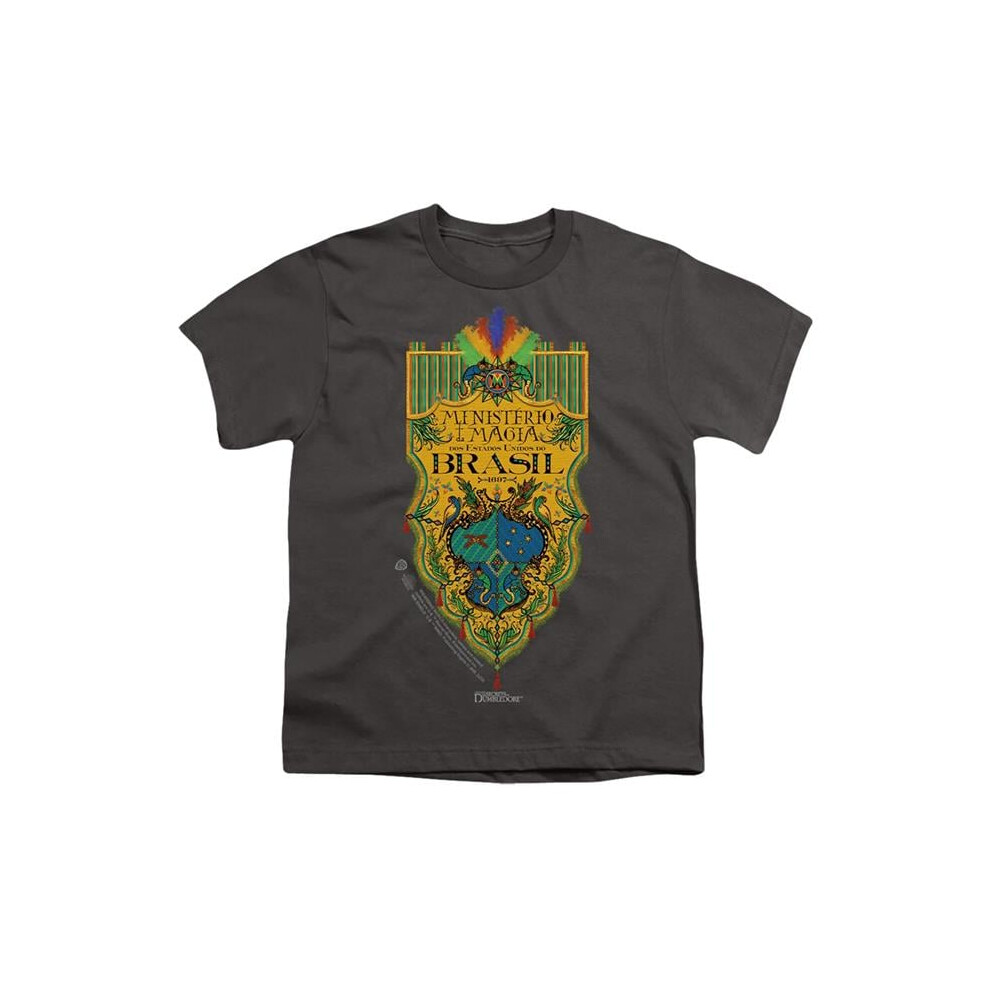 Trevco Sportswear WB340-YT-2 Fantastic Beasts The Secrets of Dumbledore Brazil Ministry Flag Youth Short Sleeve T-Shirt, Charcoal - Medium