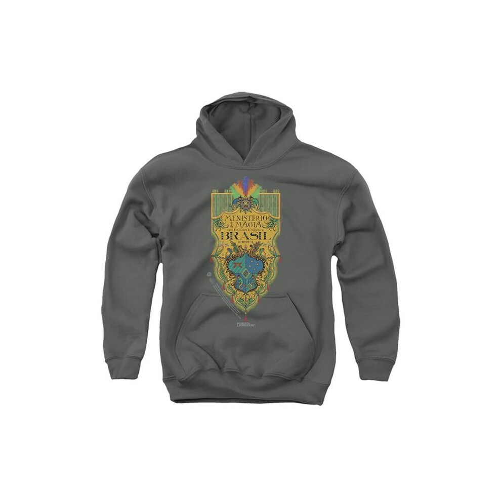 Trevco Sportswear WB340-YFTH-2 Fantastic Beasts The Secrets of Dumbledore Brazil Ministry Flag Youth Hooded Sweatshirt, Charcoal - Medium