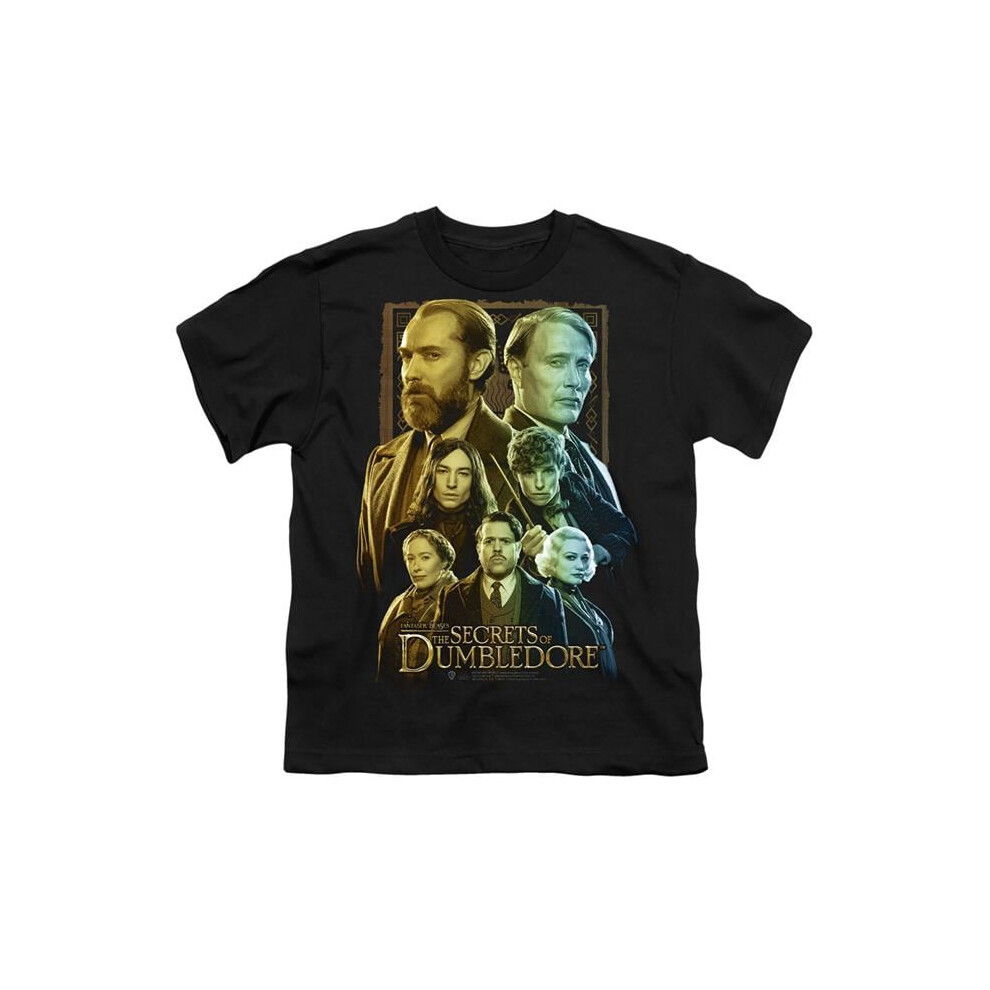 Trevco Sportswear WB339-YT-3 Fantastic Beasts The Secrets of Dumbledore Character Portraits Youth Short Sleeve T-Shirt, Black - Large