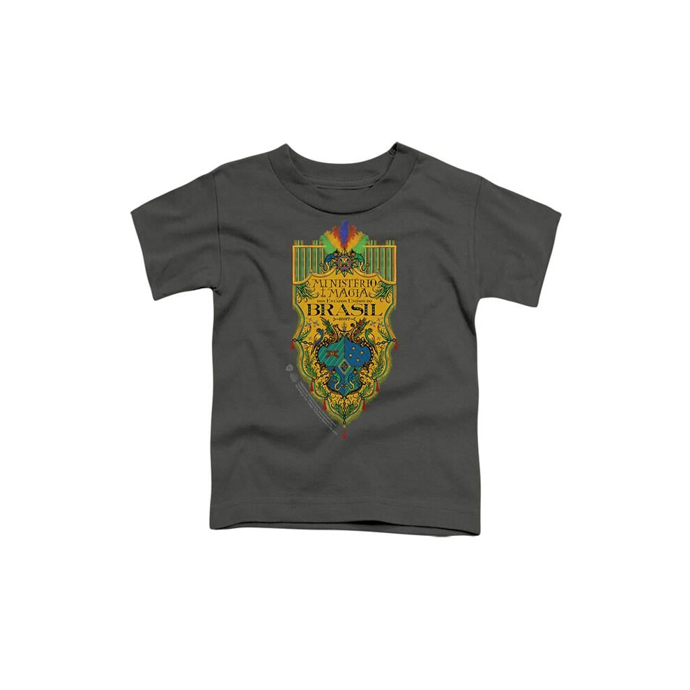Trevco Sportswear WB340-TT-2 Fantastic Beasts The Secrets of Dumbledore Brazil Ministry Flag Toddler Short Sleeve T-Shirt, Charcoal - Medium 3T