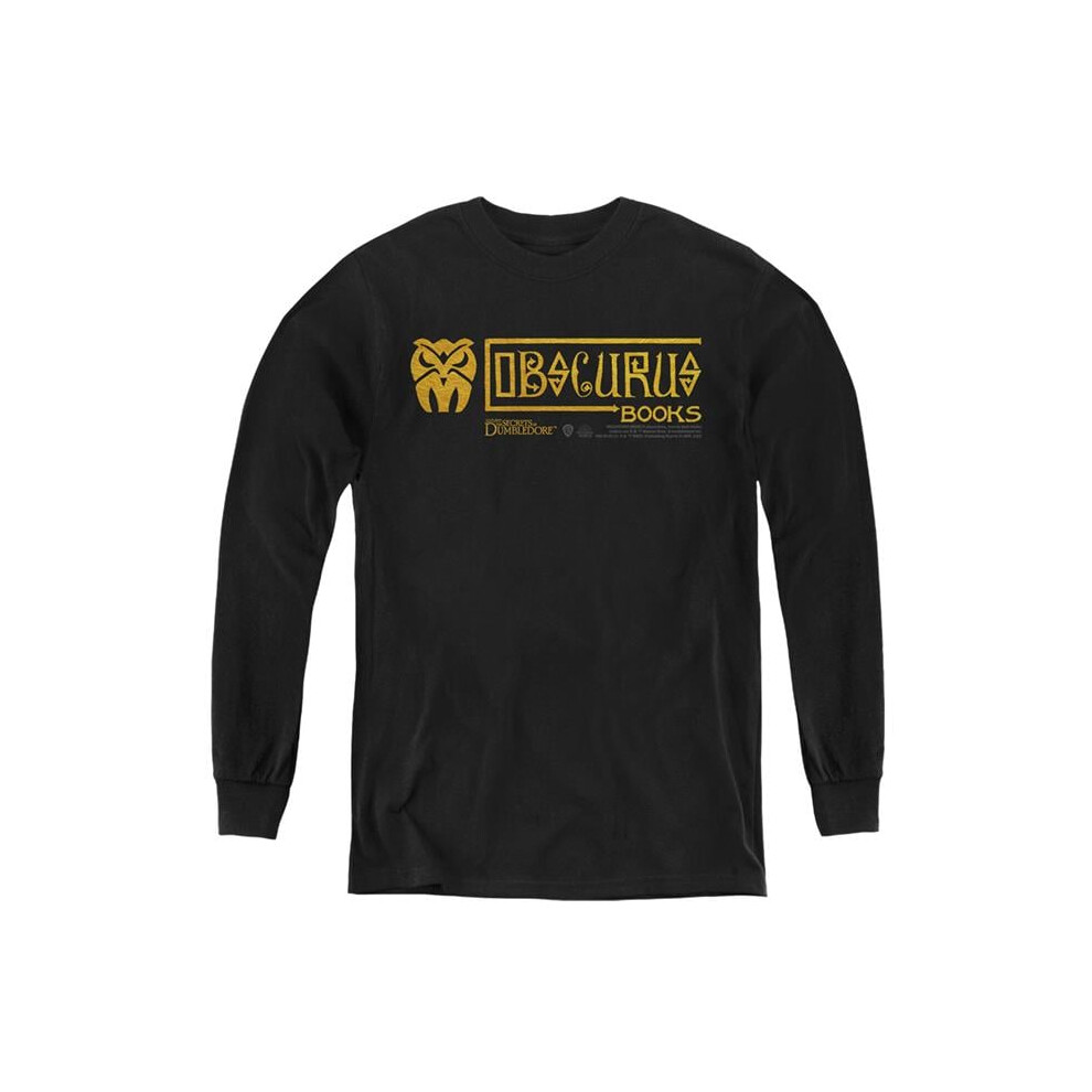 Trevco Sportswear WB338-YL-1 Fantastic Beasts The Secrets of Dumbledore Obscurus Books Logo Long Sleeve Youth T-Shirt, Black - Small