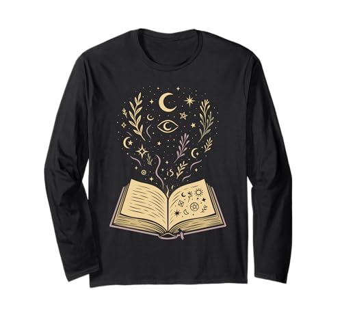 Magic Book for Witches Celestial Moon and Star Symbolic Art Long Sleeve T-Shirt