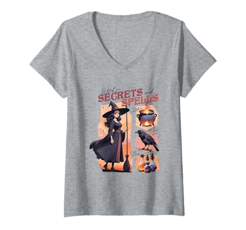 Womens Witch's Secrets and Spells - Gothic Magic Halloween Anime V-Neck T-Shirt